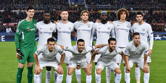 Skuat Chelsea saat lawan AS Roma. (c) AFP
