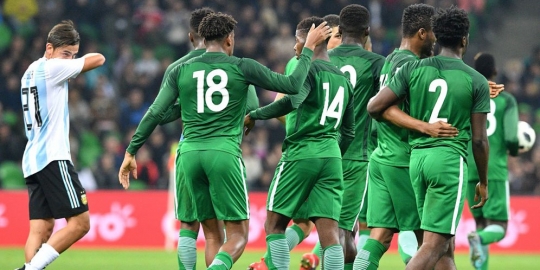 Nigeria merayakan gol ke gawang Argentina (c) AFP